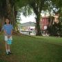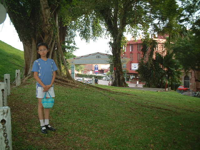 跨越马六甲河桥,到了河的东岸,映入眼帘的是一个整洁的广场,广场上有一座红色的钟塔和维多利亚时代所建的喷泉,和其他所有喷泉一样,总会有游客向里面投硬币来许愿。广场周围都是荷兰式的红色建筑物。面对广场的就是古老的荷兰红屋了,它是荷兰人在东方所保留的比较古老的建筑物。荷兰红屋有厚厚的红砖墙,笨重的硬木门,门前是宽阔的石级。