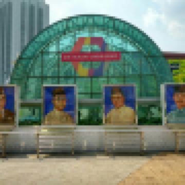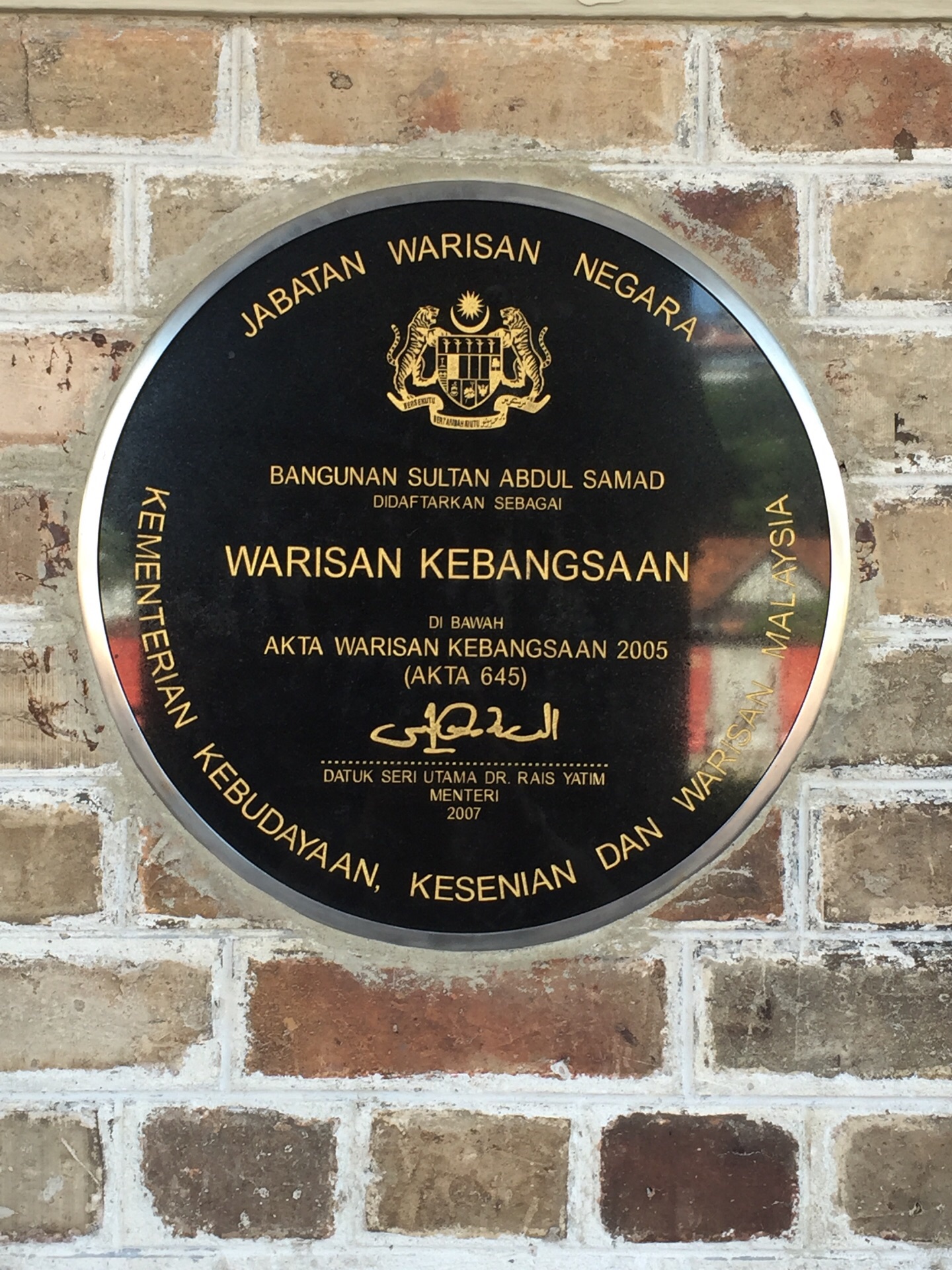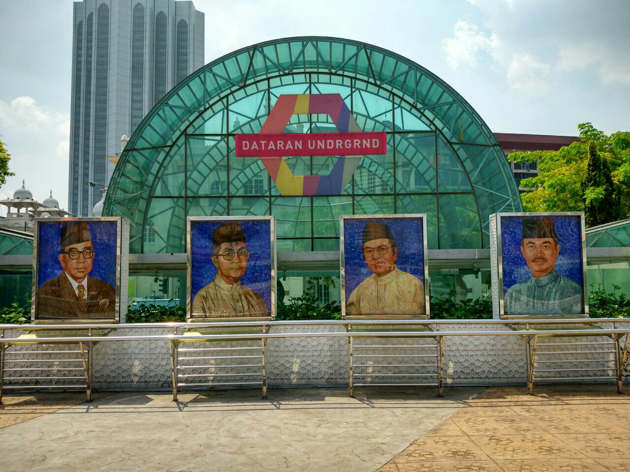入口处两侧墙上嵌饰着两幅描绘马来西亚文化历史的巨型壁画,画长35.1米,高6米。左墙壁画描绘着马来西亚各种手工艺品制造的全面情况,右墙壁画描绘从12世纪北马的兴都教(印度教)和佛教时代起到1957年马来西亚独立的各个历史重要场面。外面有走廊和喷泉,周围还有公园景观和历史建筑,走廊里不能坐,一会蚊子就会咬上身。