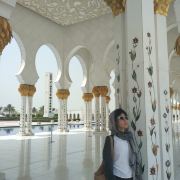 清真寺内是个避暑的好地方,寺内虽然无空调,但比室外要凉快很多。进入祈祷大厅前要经过一个宽阔的厅堂,该厅堂左右设有宽大的走廊,光脚踩在地板上凉凉的非常舒服,你也可以坐在走廊旁边的喷水池边消暑,静静的冥想片刻。如果你是租借了长袍,那么在这里拍照留念也是不错的选择。
