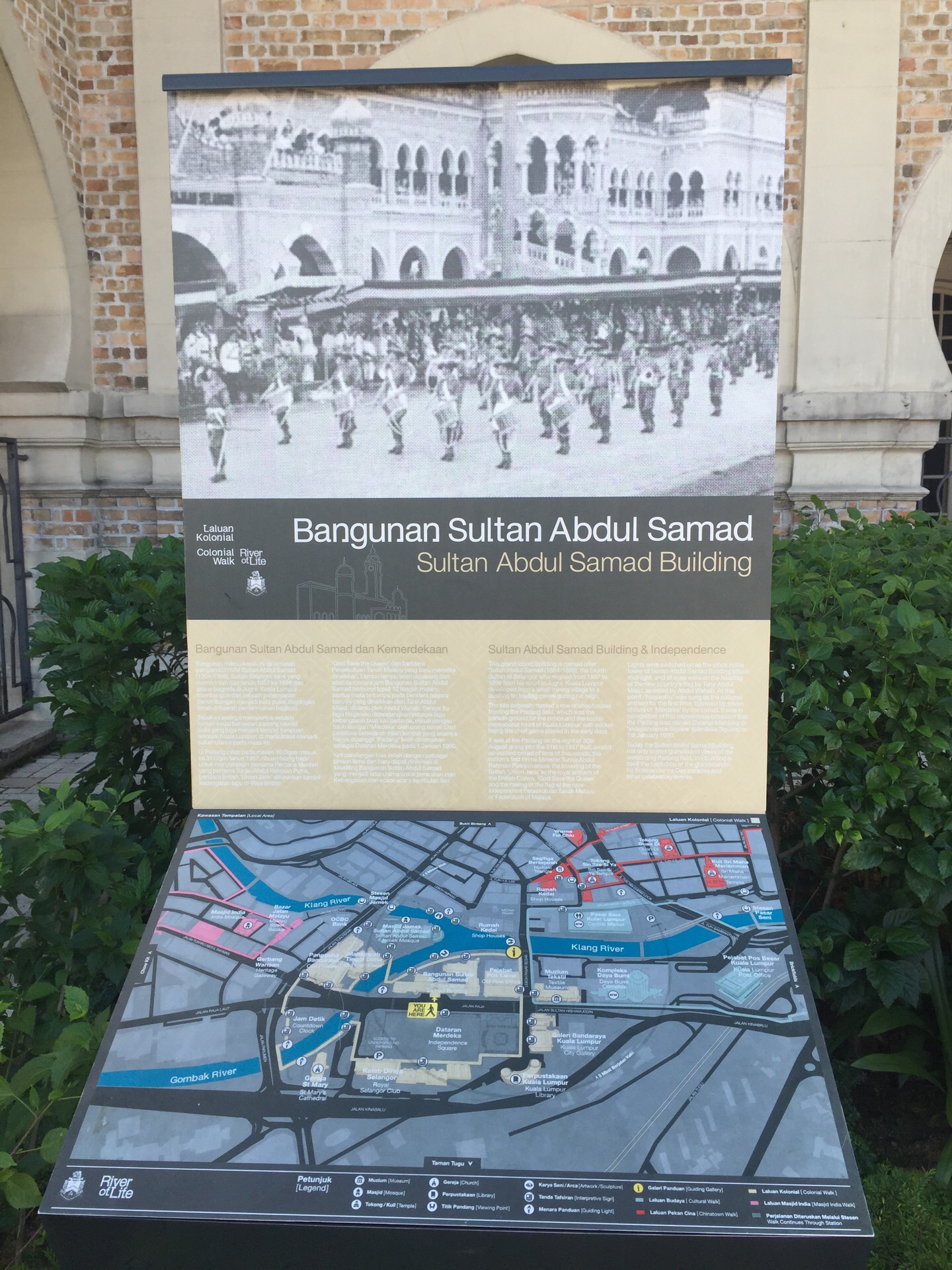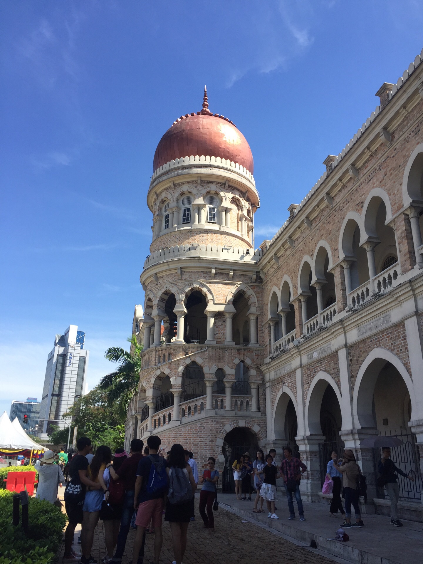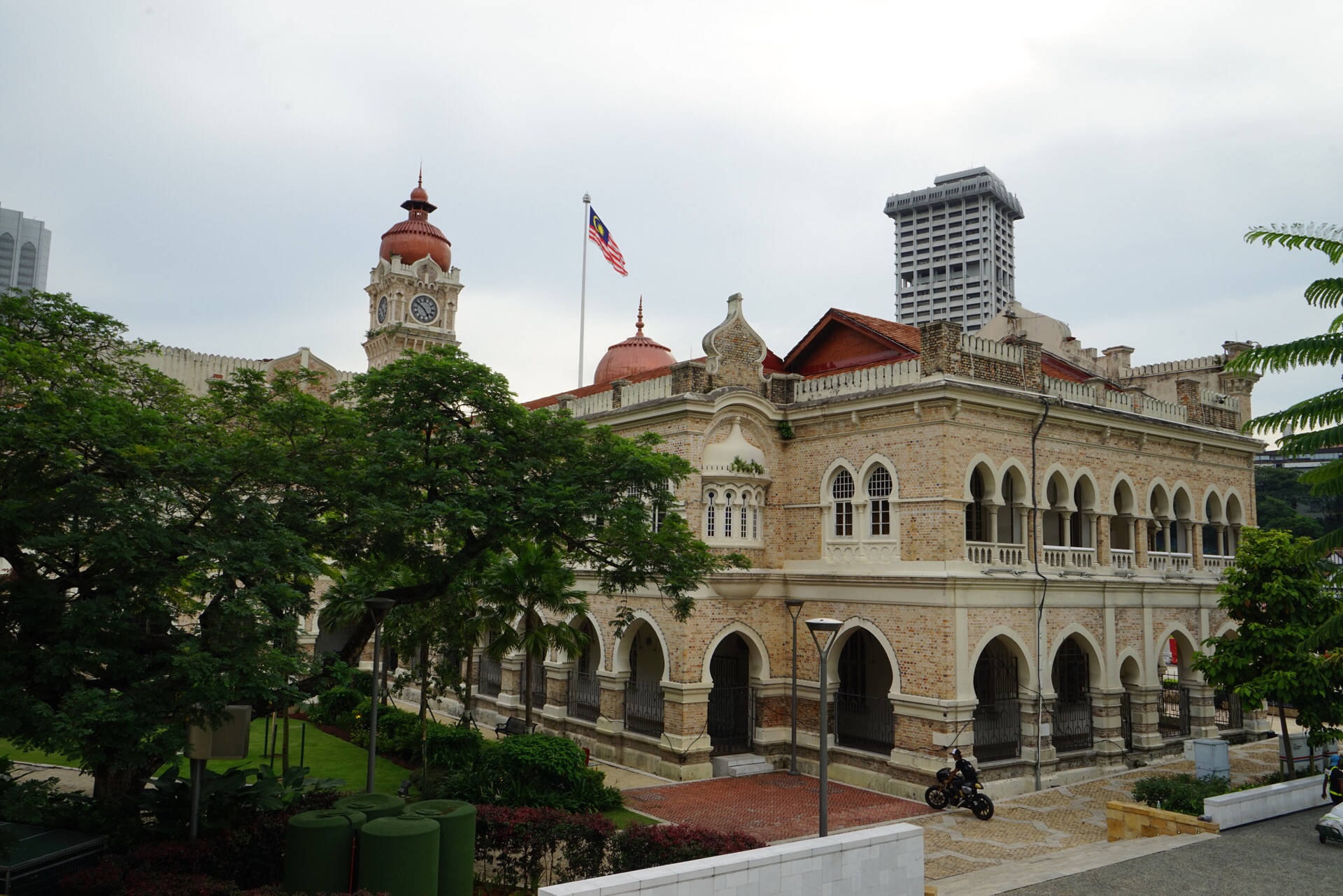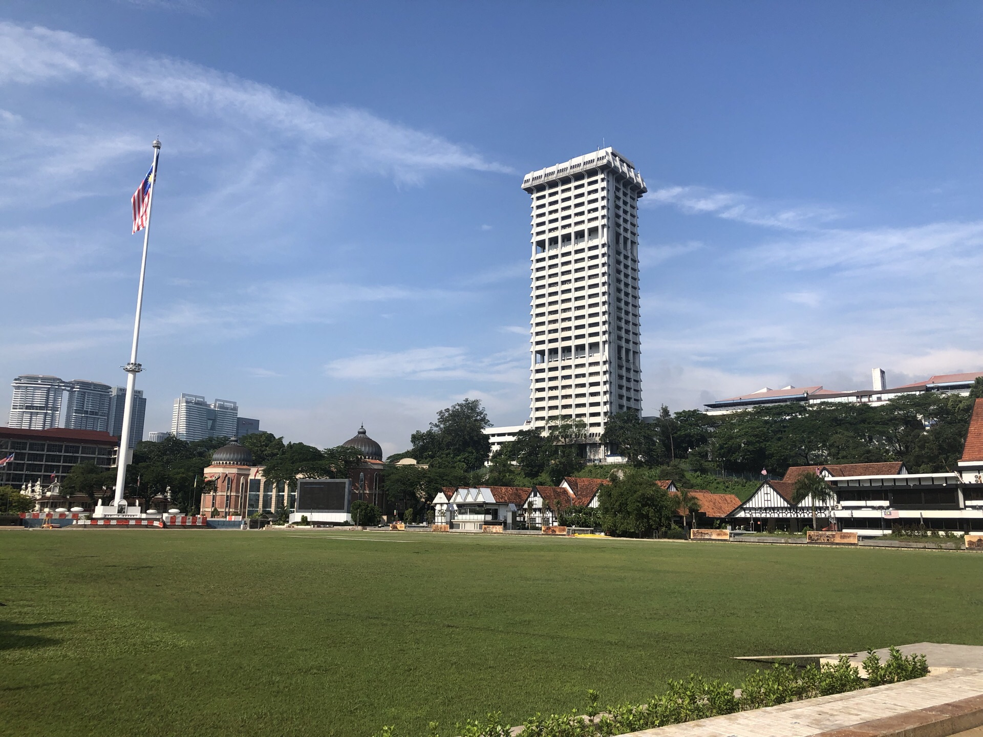广场的西面是皇家雪兰羲俱乐部。在炎热的吉隆坡,满眼绿色会多少能消解一些体内的燥热,看到独立广场的时候就有这样的感受。这里原名为雪兰莪俱乐部草场,曾经是球场,像是板球、曲棍球、网球及橄榄球等比赛都在此举行。到目前为止,偶尔这里还会举行板球比赛。